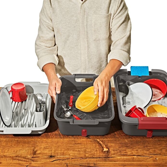With only two basins, this is useless for correct camping sanitation. I would have to buy a third bin in order to properly clean my dishes. Why would you sell this without the ability to comply with sanitary standards?